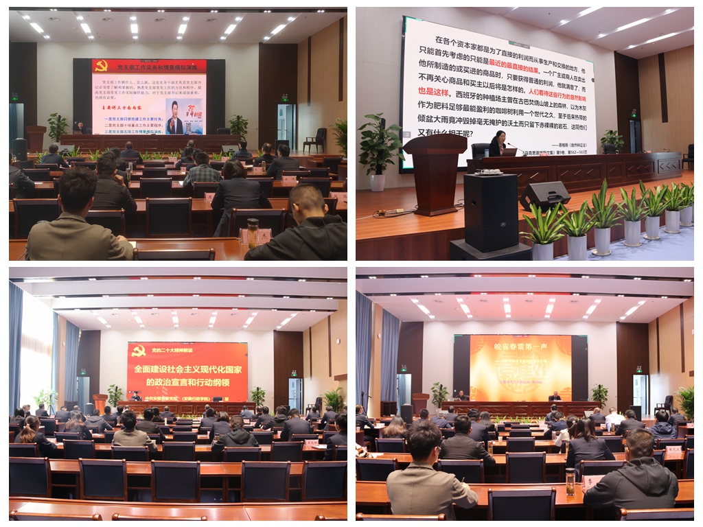 本次培訓(xùn)聚焦安徽發(fā)展的非凡華章。培訓(xùn)班安排了題為《皖省春雷第一聲》的專題黨史學(xué)習(xí)教育,帶領(lǐng)全體參訓(xùn)學(xué)員回顧了安徽早期建黨建團(tuán)那一段波瀾壯闊的歷史,引領(lǐng)大家深刻體會(huì)黨的安徽事業(yè)在創(chuàng)業(yè)初期的艱辛;又在二十大精神學(xué)習(xí)中,回顧了自十九大以來(lái),安徽省在黨的帶領(lǐng)下,全省人民砥礪前行,實(shí)現(xiàn)了由“總量居中、人均靠后”轉(zhuǎn)變?yōu)椤翱偭靠壳?、人均居中”的發(fā)展歷程,激勵(lì)大家在二十大精神的引領(lǐng)下,忠誠(chéng)盡職、奮勇?tīng)?zhēng)先,共同譜寫(xiě)現(xiàn)代化美好安徽建設(shè)新篇章。