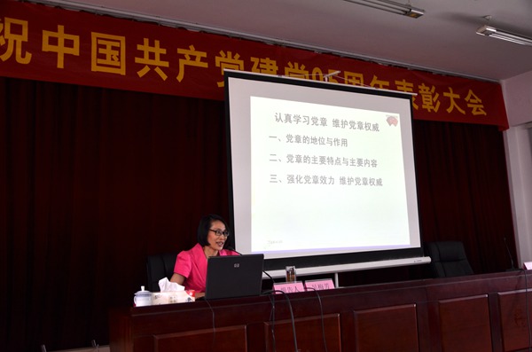 吳梅芳教授為大家作了題為“認真學習黨章、維護黨章權威”的專題黨課。她從黨章的地位和作用、黨章的主要特點與主要內容以及強化黨章效力、維護黨章權威等方面詳細解讀了黨章的總綱、條文內容與邏輯結構。她用樸實的言語、典型的事例全面系統(tǒng)的解讀了黨章的地位和作用、黨章主要特點和主要內容,詮釋了認真學習黨章、嚴格遵守黨章的重要性,闡述了強化黨章效力、維護黨章權威的現(xiàn)實意義。