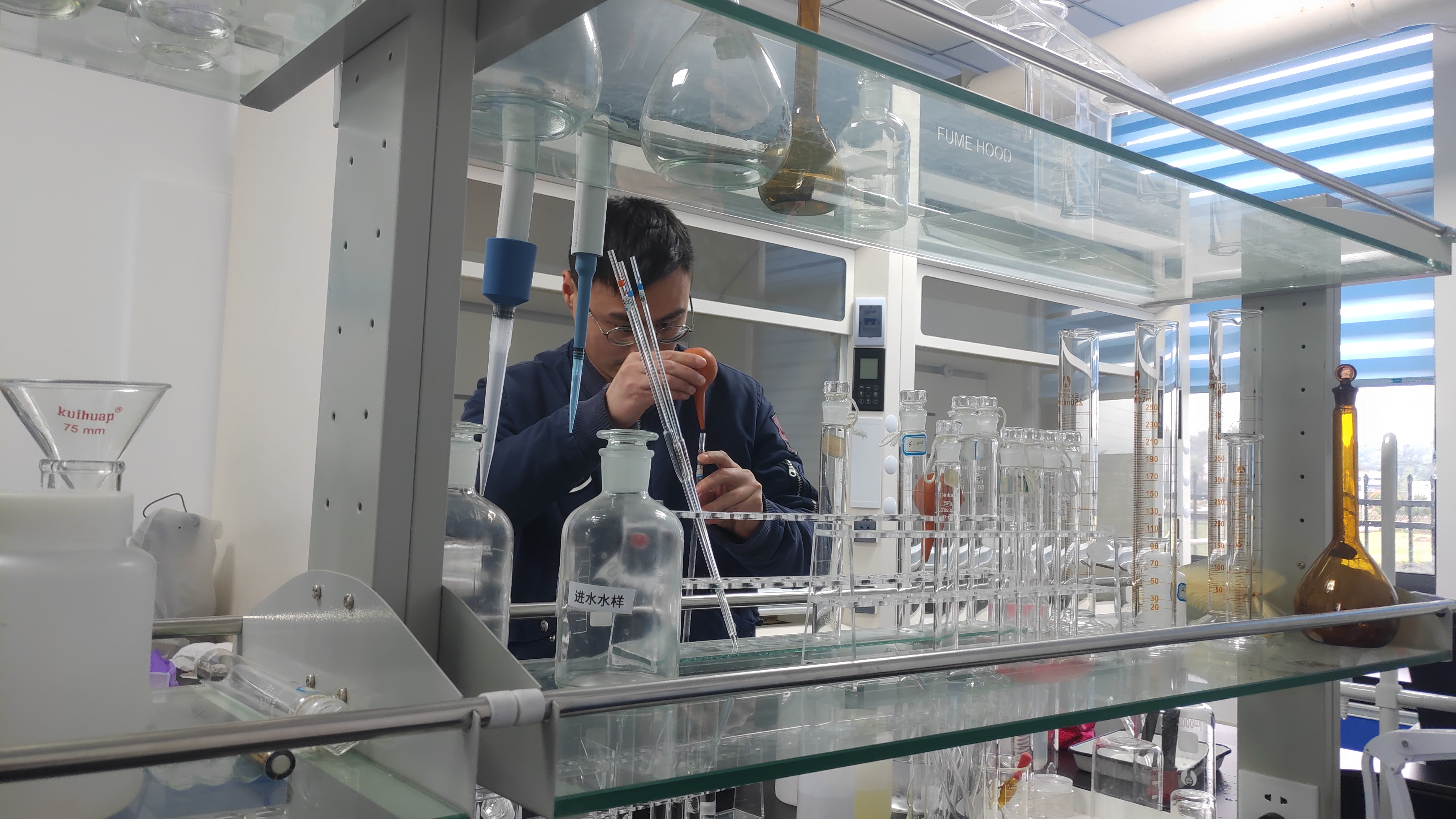 (上圖為檢測員正在對污水處理廠進水水質(zhì)進行檢測)