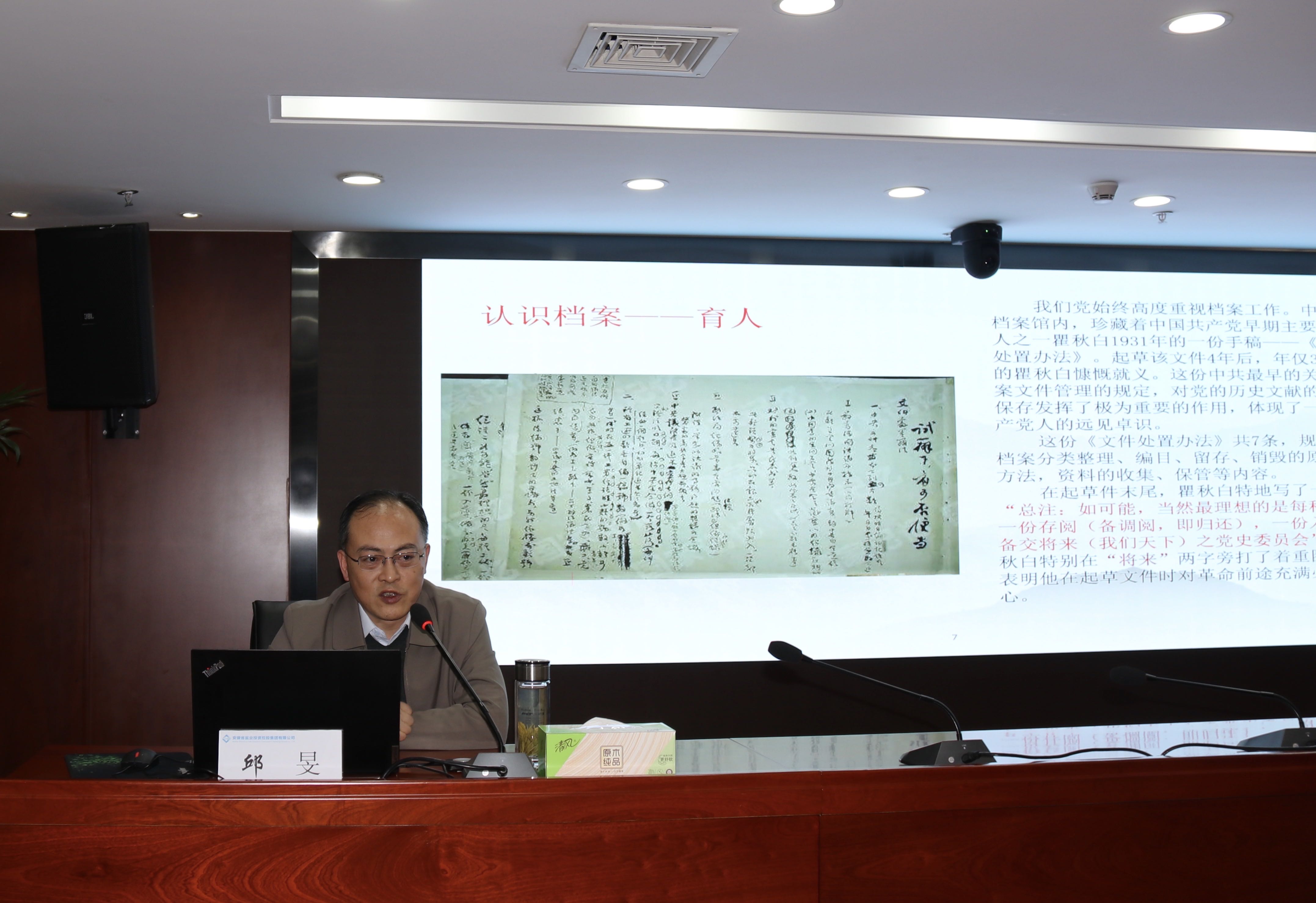 為深入貫徹落實(shí)《中華人民共和國(guó)檔案法》《安徽省檔案條例》,學(xué)習(xí)貫徹習(xí)近平總書記關(guān)于檔案工作的重要批示指示精神,加強(qiáng)和改進(jìn)集團(tuán)檔案工作,助力集團(tuán)改革轉(zhuǎn)型發(fā)展,3月13日下午,集團(tuán)公司在2406會(huì)議室召開檔案工作培訓(xùn)會(huì),各直屬(控股)公司分管檔案工作領(lǐng)導(dǎo)、檔案部門負(fù)責(zé)人、專(兼)檔案員,集團(tuán)本部各部門負(fù)責(zé)人、兼職檔案員共40余人現(xiàn)場(chǎng)聆聽。集團(tuán)公司黨委委員、副總經(jīng)理余保山主持會(huì)議。