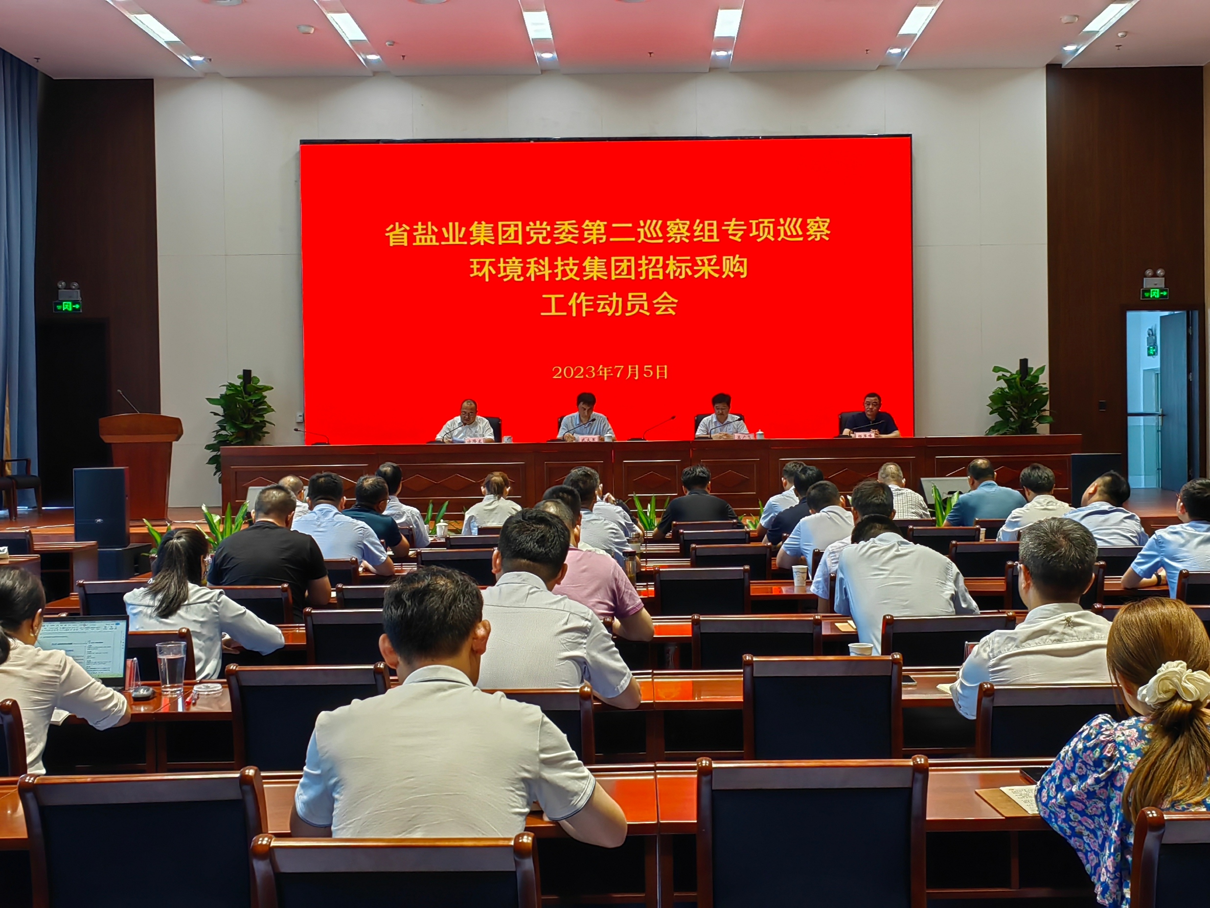 根據(jù)省鹽業(yè)集團黨委統(tǒng)一部署,7月5日,省鹽業(yè)集團黨委第二專項巡察組巡察環(huán)境科技集團招標采購工作動員會召開。會上,集團紀委副書記、黨委巡察辦主任武大軍傳達上級巡視巡察工作指示精神和集團黨委巡察工作部署要求;第二專項巡察組組長高廣飛通報巡察任務(wù)和總體安排,對配合巡察工作提出要求;環(huán)境科技集團黨委書記、董事長方降龍主持會議并做表態(tài)發(fā)言。第二專項巡察組成員,環(huán)境科技集團領(lǐng)導班子成員,各職能部門、所屬各單位負責人和部分職工代表參加會議。