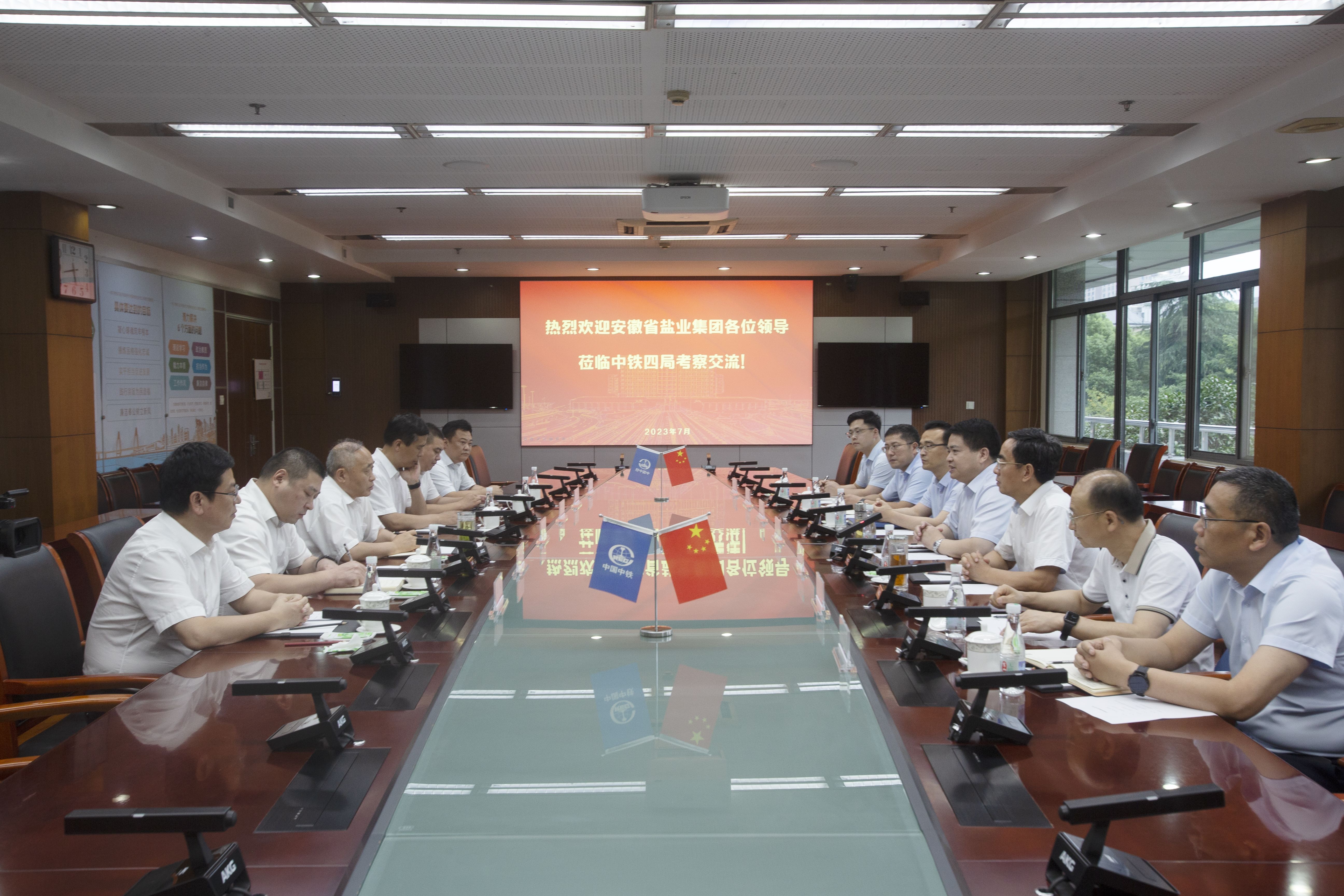 7月18日,省鹽業(yè)集團(tuán)黨委書記、董事長羅太忠,黨委副書記、總經(jīng)理、董事王思軍拜訪中鐵四局集團(tuán)黨委書記、董事長劉勃,雙方就進(jìn)一步深化合作進(jìn)行座談交流。