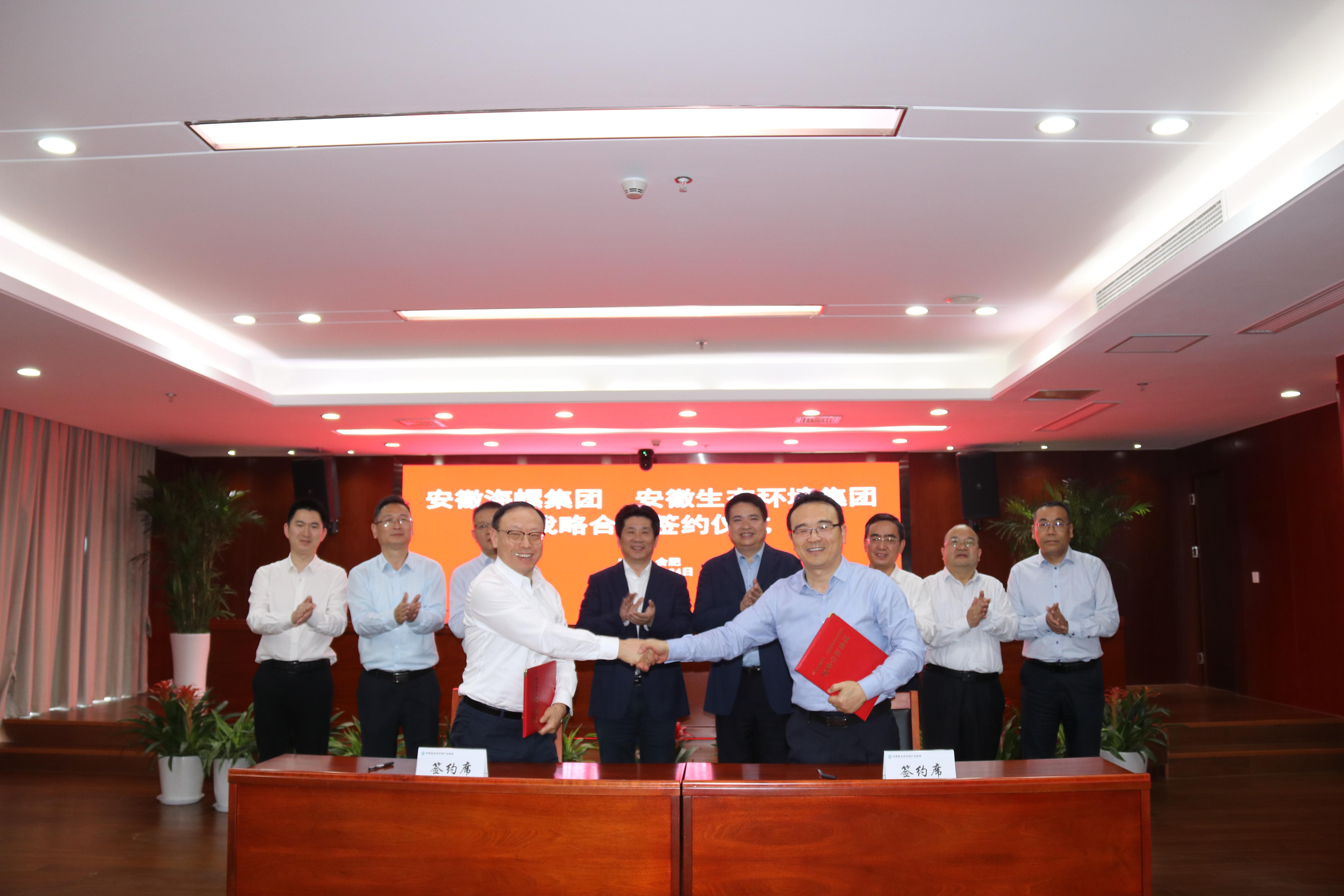 省生態(tài)環(huán)境集團(tuán)黨委委員、副總經(jīng)理王奇,海螺集團(tuán)黨委委員、副總經(jīng)理吳斌代表雙方簽署戰(zhàn)略合作協(xié)議。安徽環(huán)境科技集團(tuán)、安徽順朝公司、海螺水泥、海螺環(huán)保以及雙方有關(guān)部門負(fù)責(zé)同志參加會(huì)議。