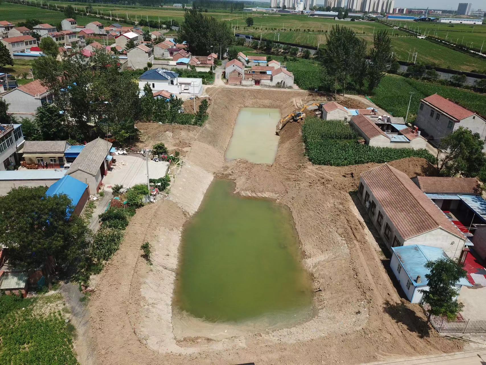 環(huán)境科技集團(tuán)為改善這一現(xiàn)狀,提升村民幸福感,自主設(shè)計(jì)生態(tài)修復(fù)、內(nèi)源治理等治理方案。通過清淤、清雜、清垃圾、邊坡修整,塘中放置人工浮島(種植水芹),邊坡采用植物護(hù)坡等措施,致力于把黑臭坑塘建成水清、岸綠、景美村民休閑娛樂的好地方,成為全縣名副其實(shí)的黑臭水體治理示范點(diǎn)。該項(xiàng)目于7月8日進(jìn)場施工,受近期當(dāng)?shù)貜?qiáng)降雨影響,截止到7月23日,形象進(jìn)度約完成60%,水體內(nèi)源治理、邊坡修整及排水渠建設(shè)完成70%。