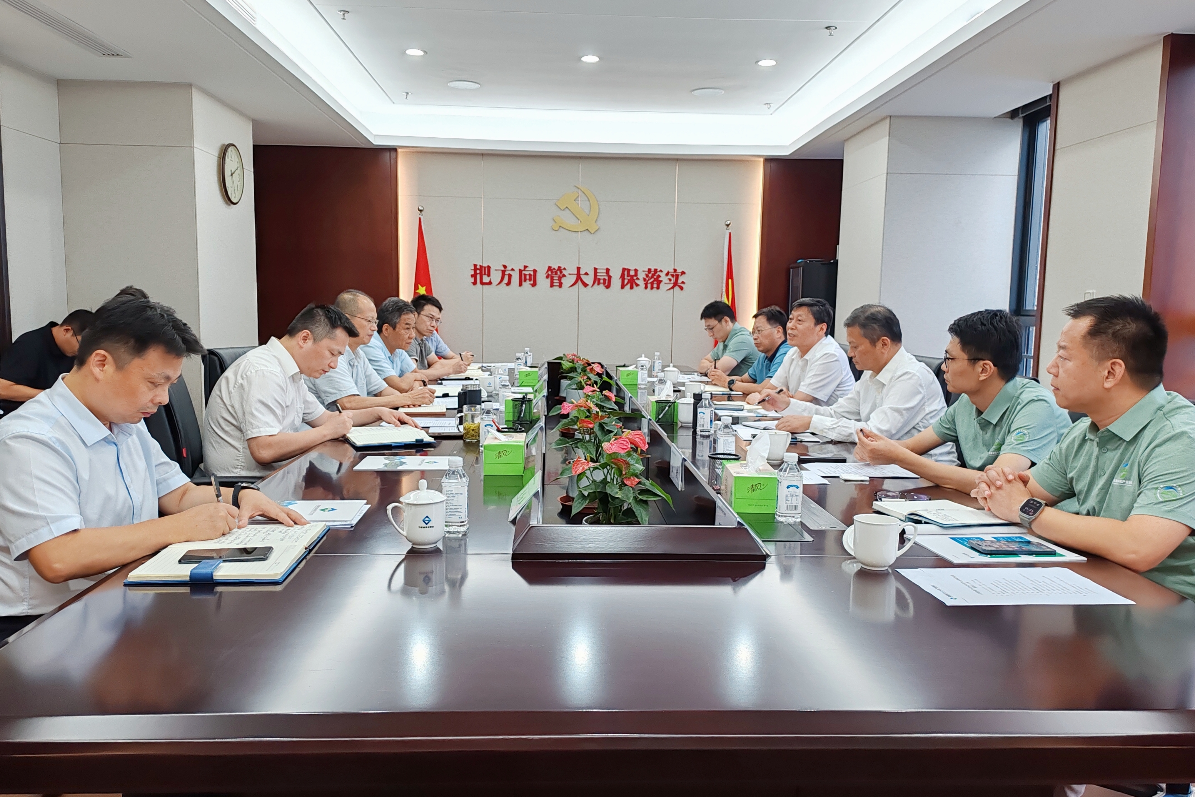 省生態(tài)環(huán)境廳原二級巡視員許建,集團黨委委員、副總經(jīng)理李明(主持總經(jīng)理辦公會),集團黨委委員、副總經(jīng)理繆磊,省經(jīng)濟研究院副院長蔣旭東,以及雙方有關(guān)部門負責同志參加會議。