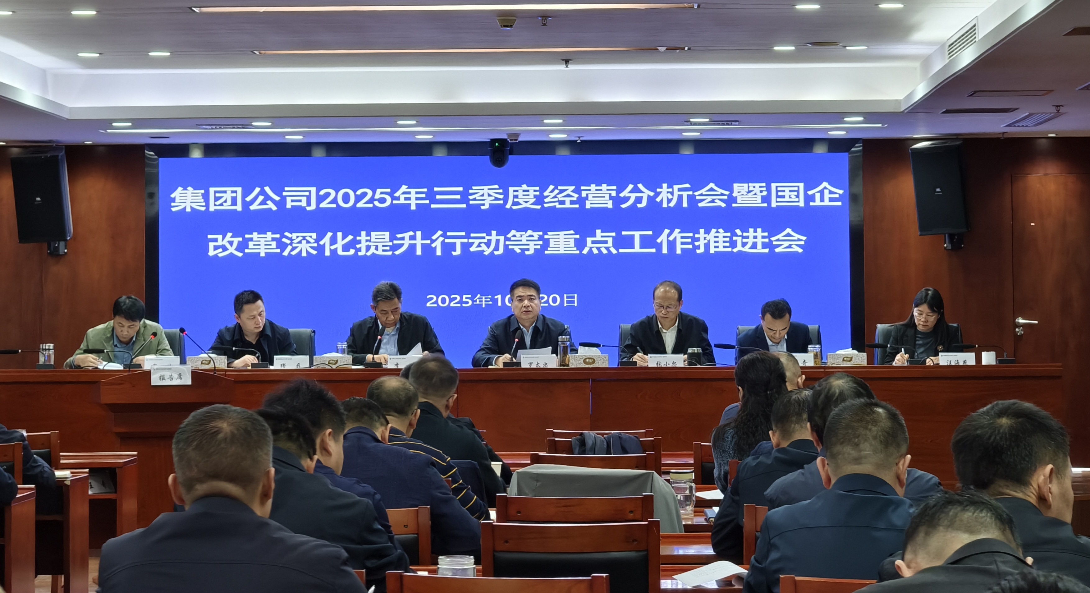 10月20日,集團公司召開2025年三季度經(jīng)營分析會暨國企改革深化提升行動等重點工作推進會,集團黨委書記、董事長羅太忠出席會議并講話,集團黨委委員、副總經(jīng)理李明主持會議。集團公司領導班子成員,各直屬(控股)公司領導班子成員,集團本部各部門負責人、所屬二級單位專職外部董事等參加會議。