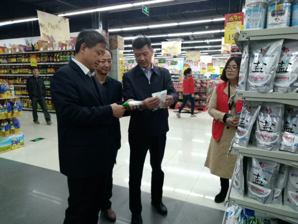 靳海一行在省集團公司副總經(jīng)理邱軍的陪同下,首先實地考察了蚌埠華運、合家福兩大商超系統(tǒng)“中鹽”鹽品的市場鋪貨和銷售情況,在蚌埠鹽業(yè)物流中心倉庫實地查看了鹽與非鹽倉儲物流情況。