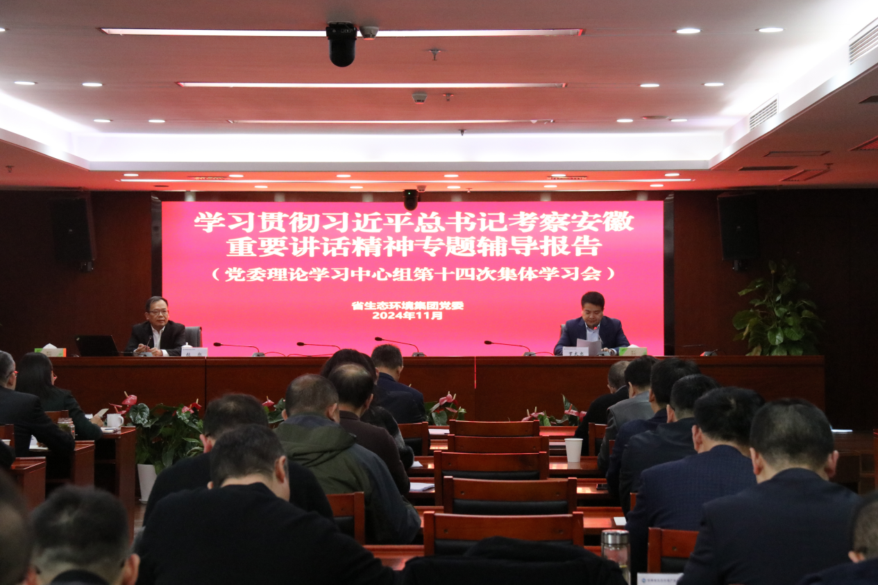 11月29日,省生態(tài)環(huán)境集團(tuán)召開學(xué)習(xí)貫徹習(xí)近平總書記考察安徽重要講話精神專題輔導(dǎo)報告會暨黨委理論學(xué)習(xí)中心組集體學(xué)習(xí)(擴(kuò)大)會,邀請中共安徽省委講師團(tuán)團(tuán)長、教授張彪作專題輔導(dǎo)報告。集團(tuán)公司黨委、經(jīng)營班子成員,各直屬(控股)公司班子成員,集團(tuán)本部中層以上管理人員,各子公司黨員干部職工共計1000余人在主會場和視頻分會場參會。