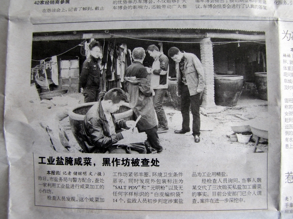 本報(bào)訊(記者 儲繼明 文/攝)昨日,市鹽務(wù)局與警方配合,查處一家利用工業(yè)鹽進(jìn)行咸菜加工的小作坊。