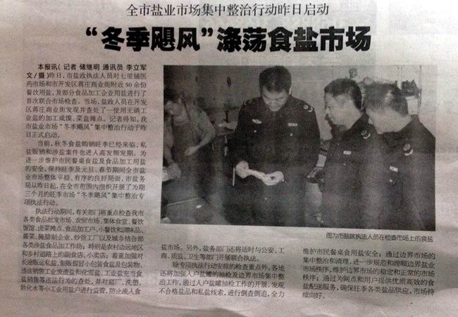 執(zhí)法行動期間,有關(guān)部門將重點檢查我市各類食品批發(fā)市場、農(nóng)貿(mào)市場、集體食堂、餐飲飯館、鹵菜攤點、食品加工戶、小餐飲和調(diào)味品、醬菜、腌臘制企業(yè)、炒貨工廠以及城鄉(xiāng)結(jié)合部各類涉鹽食品加工作坊;特別是農(nóng)村邊遠地區(qū)和鄉(xiāng)村道路上的副食店、小賣店;著重加強對長途販運私鹽、制販假冒小包裝食鹽及包裝物、違法銷售工業(yè)廢渣鹽和化雪鹽、工業(yè)鹽充當食鹽銷售等違法行為的查處,并對窯廠、洗塑、軟化水等小工業(yè)用鹽戶進行監(jiān)管,防止流入食鹽市場。另外,鹽務(wù)部門還將適時與公安、工商、質(zhì)監(jiān)、衛(wèi)生等部門開展聯(lián)合執(zhí)法。