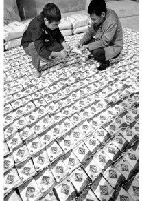 今年5月起,蒙城縣鹽務(wù)局鹽政稽查大隊和公安部門聯(lián)手,歷時5個多月,破獲一起加工銷售假冒綠色食品鹽的團伙案,抓獲違法犯罪嫌疑人12人,案件涉及假冒綠色食品鹽600余噸。該案涉及皖蘇豫三省以及蒙城、亳州等六縣(市),時間跨度達6年之久。圖為11月6日,蒙城縣鹽政執(zhí)法人員在查看清點收繳的私鹽。
