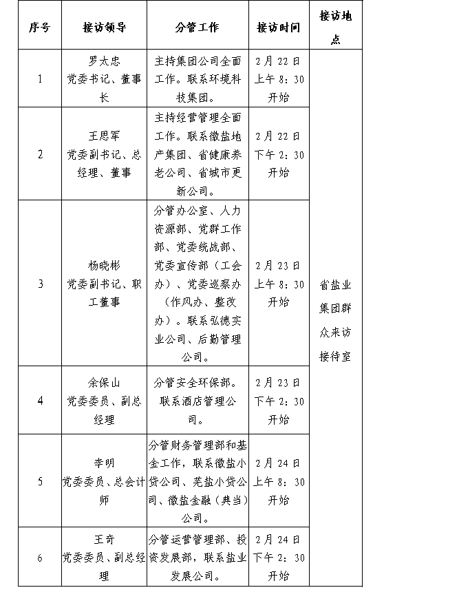 三、省鹽業(yè)集團領(lǐng)導(dǎo)接訪安排