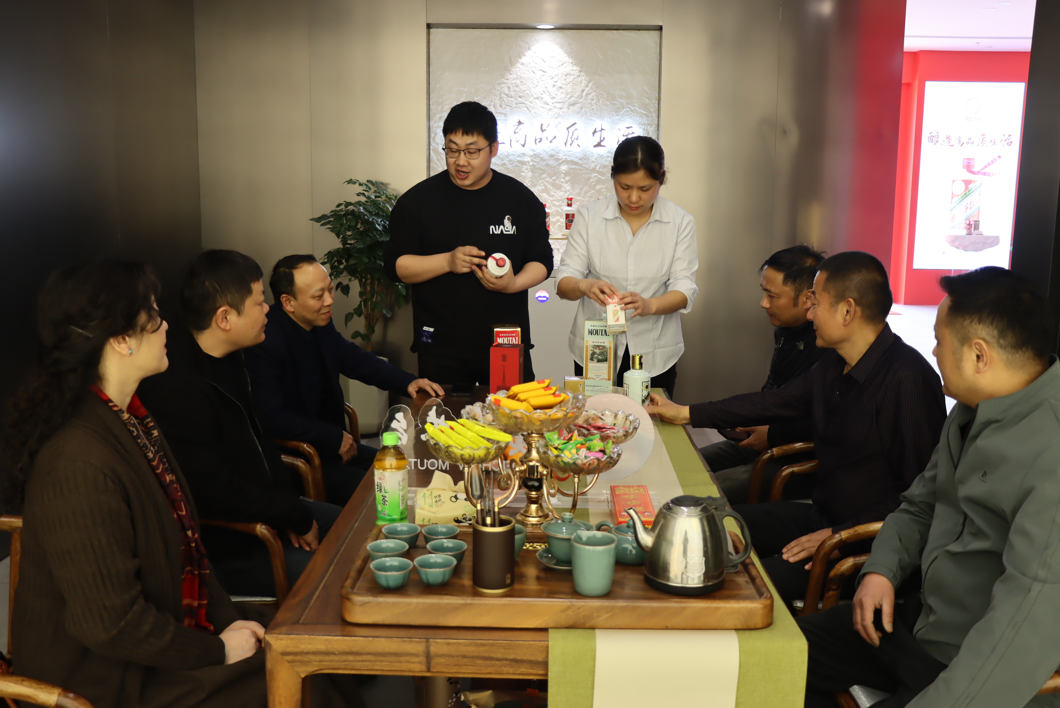 活動(dòng)中,專賣店店員為客戶們?cè)敿?xì)介紹了i茅臺(tái)線上產(chǎn)品,宣傳茅臺(tái)知識(shí),貴州茅臺(tái)酒品質(zhì)卓越,具有“醬香突出、幽雅細(xì)膩、酒體醇厚、回味悠長(zhǎng)、空杯留香持久”的酒體特點(diǎn),茅臺(tái)酒的香氣特征被剖析為9大類香氣,包括:花香、水果香、青草香、甜香、焙烤香、干植物香、醬香、酸香及其它香氣,這些呈現(xiàn)不同香氣特征的物質(zhì)組成了茅臺(tái)酒復(fù)雜的香氣特征。其以獨(dú)特高品質(zhì)的釀造工藝成為中國(guó)白酒的“活化石”。中國(guó)大曲醬香型的代表和鼻祖。在中國(guó)酒文化中占據(jù)極為重要的地位。