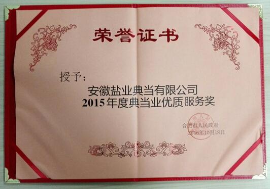 從合肥市政府獲悉,合肥市人民政府近日下發(fā)《關(guān)于2015年度金融機(jī)構(gòu)支持地方發(fā)展先進(jìn)單位的通報》(合政秘〔2016〕103號)的文件,安徽鹽業(yè)典當(dāng)有限公司憑借較好的經(jīng)營管理業(yè)績,榮獲合肥市政府年度通報表彰?;整}典當(dāng)公司榮獲“2015年度典當(dāng)業(yè)優(yōu)質(zhì)服務(wù)獎”。