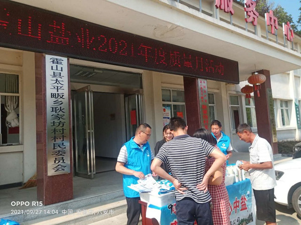 9月27日,霍山縣鹽業(yè)公司利用到太平畈鄉(xiāng)耿家坊村扶貧之際,結合鹽業(yè)發(fā)展公司《旺季市場營銷宣傳工作方案》“四進一參”相關要求,開展了“質(zhì)量月”主題宣傳活動。