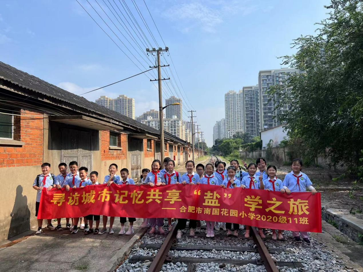 在鐵路專用線,同學們聽老師講解,知道合肥人吃的鹽都從哪里來,了解鐵路專用線的建造和停用背景。