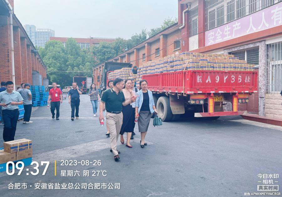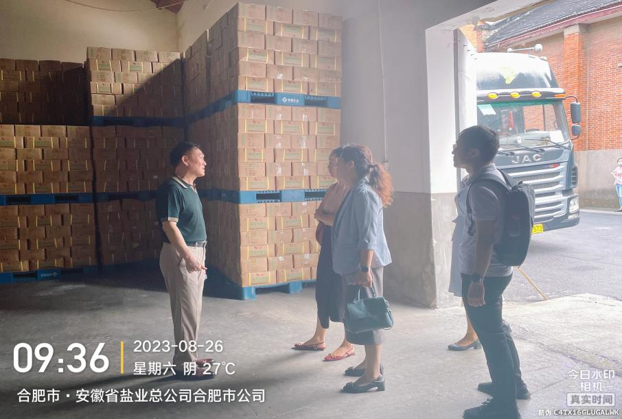 8月26日上午省經(jīng)信廳戴琳琳處長、市經(jīng)信局總工郭梅赴合肥市公司現(xiàn)場調(diào)研,詳細了解兩日來鹽品銷售及儲備鹽庫存情況,對合肥鹽業(yè)在搶購期間應急保供、穩(wěn)定市場、充足儲備鹽庫存工作給予了充分肯定,同時要求合肥市公司繼續(xù)以保民生為首要任務,密切關注市場動態(tài)并及時上報。