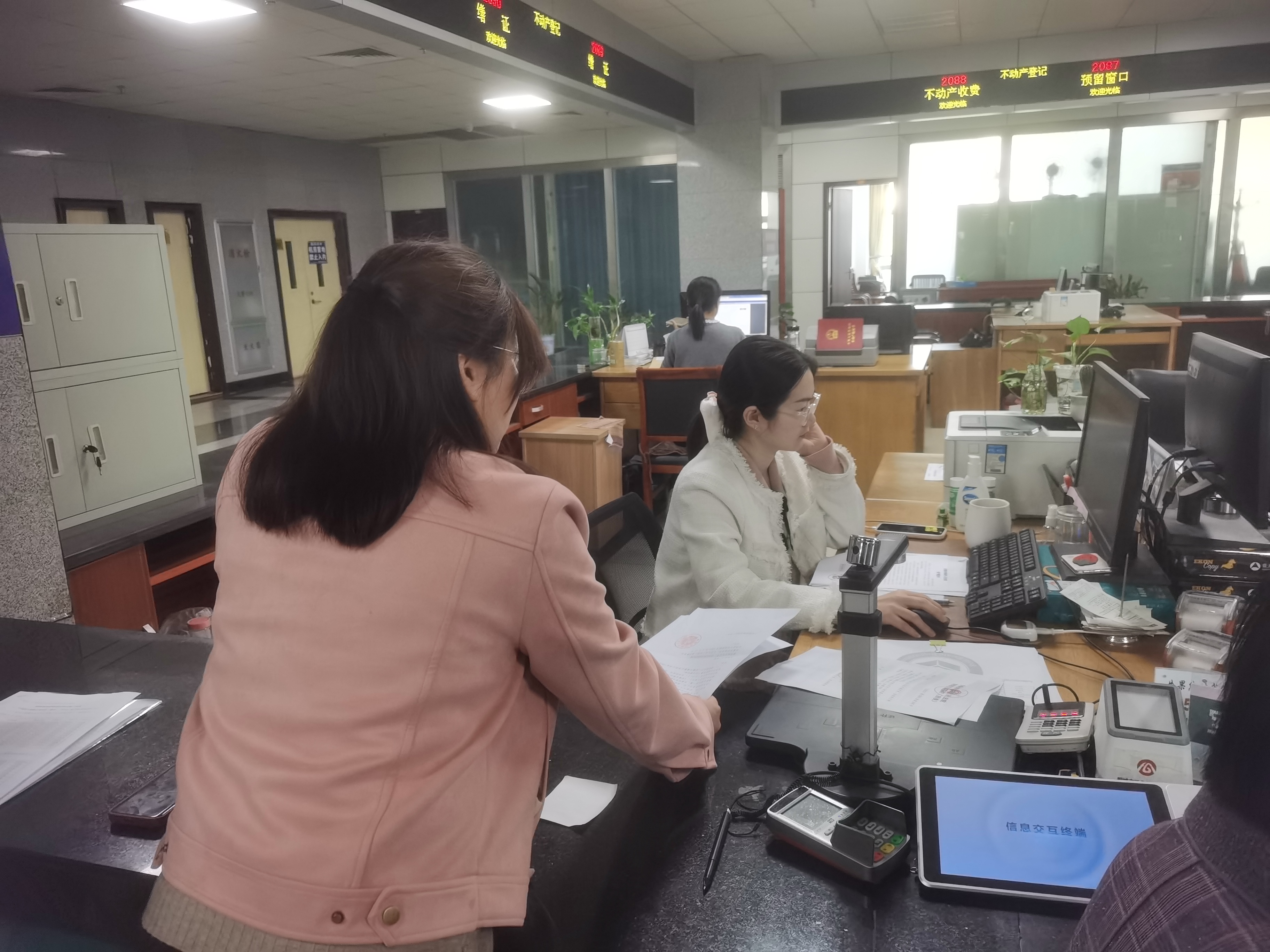 圖為小貸公司清收人員和律師在桐城市不動產(chǎn)中心排查被執(zhí)行人財(cái)產(chǎn)信息。