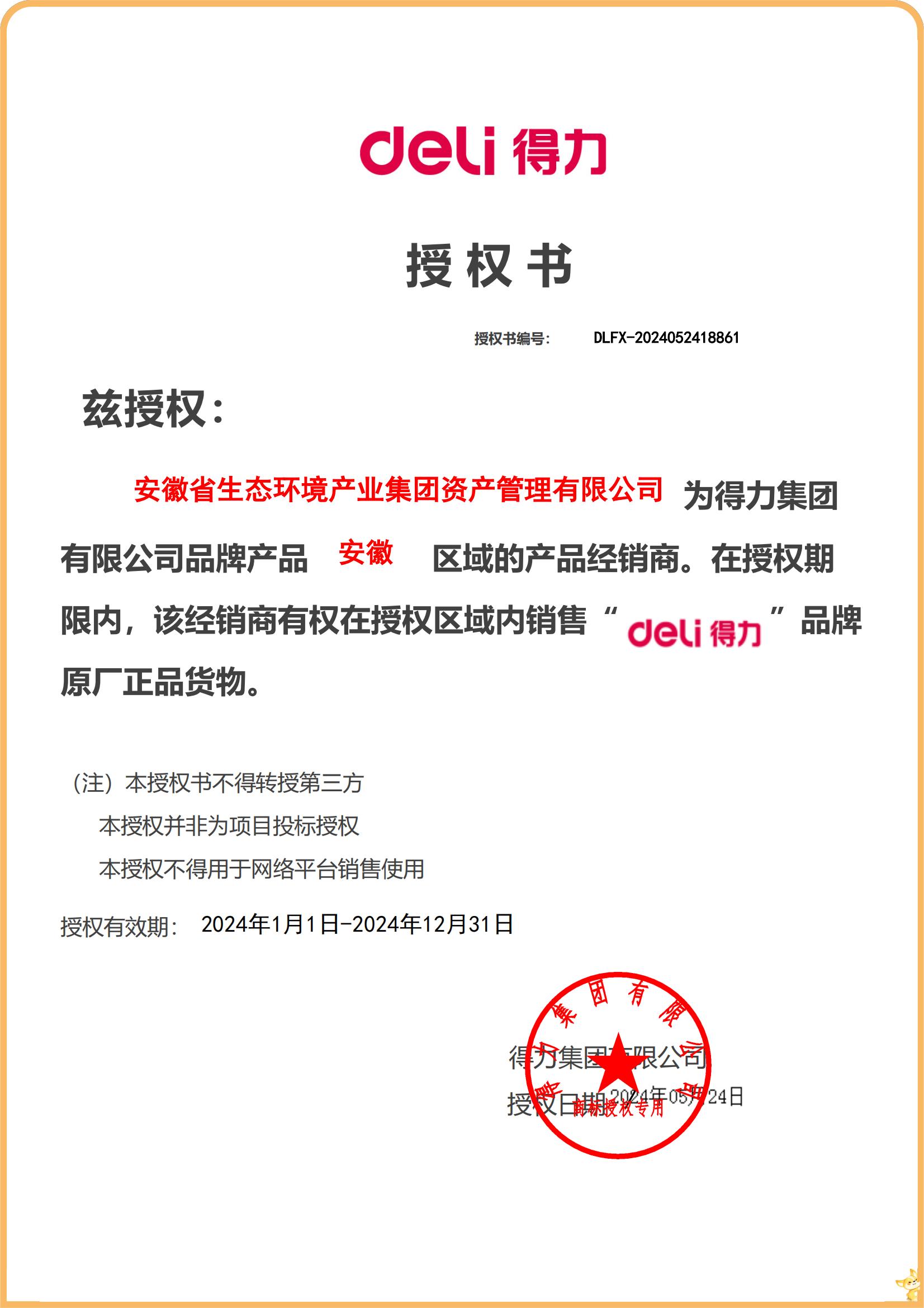 經(jīng)過不懈努力,5月24日,省生態(tài)環(huán)境產(chǎn)業(yè)集團(tuán)資產(chǎn)管理公司獲得中國最大的辦公與學(xué)習(xí)用品產(chǎn)業(yè)集團(tuán)即得力集團(tuán)的官方授權(quán)。