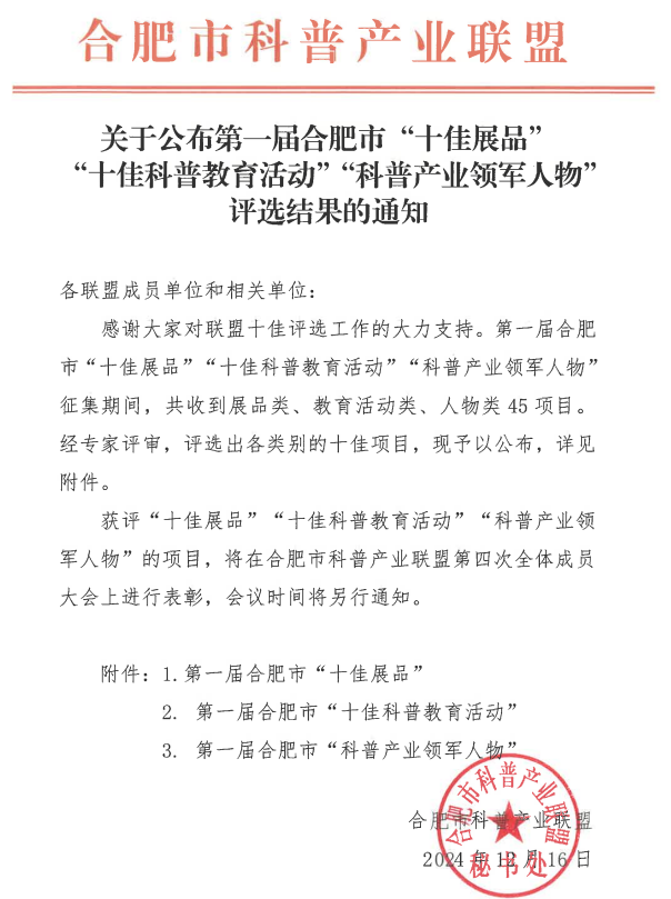 合肥鹽業(yè)先后獲評(píng)合肥市科普教育基地、安徽省科普示范單位、安徽省科學(xué)技術(shù)普及基地。