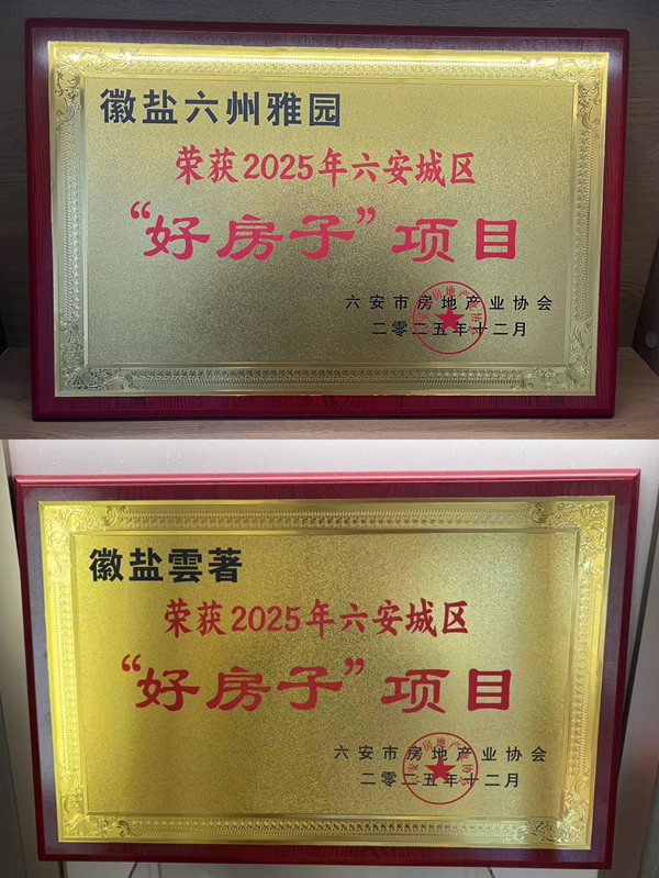 近日,徽鹽·六州雅園與徽鹽·雲著憑借在安全品質、舒適宜居、綠色生態(tài)、智慧服務等方面的突出實績,榮獲六安“好房子”項目稱號。