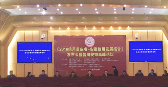 2017年2月25日,由安徽省社會科學院、安徽省經(jīng)濟和信息化委員會、安徽省商務(wù)廳、安徽省工商行政管理局、安徽省人民政府法制辦公室、安徽省人民政府金融工作辦公室、安徽省信用協(xié)會和安徽省信用研究中心聯(lián)合舉辦的《2016信用藍皮書——安徽信用發(fā)展報告》發(fā)布暨信用安徽高峰論壇在省人大會議中心召開。