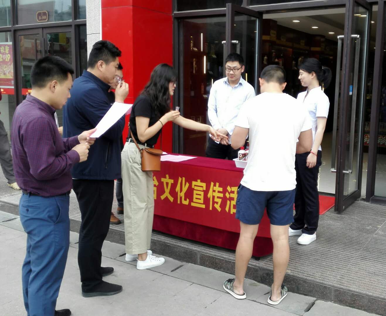 樹立國企公眾形象,提高社會(huì)美譽(yù)度,我公司于2019年5月16日下午在茅臺(tái)酒專賣店店面外開展“茅臺(tái)文化宣傳活動(dòng)”。